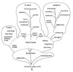بر اساس تئوری تکامل موجودات جدید تر همگی اجداد مشترکی دارند، و برای نشان دادن این شراکت در اجداد، معمولا از درختواره های فیلوژنتیکی (Phylogenetic tree) استفاده میشود، بعنوان مثال درختواره زیر (برای بزرگ شدن روی آن کلیک کنید) ارتباط حیوانات با گیاهان و سایر موجودات را نشان میدهد.
