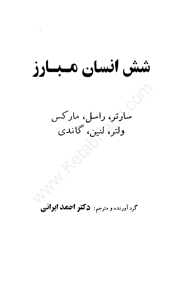 شش انسان مبارز اکتبر 30, 2009کتابکتاب-مردمسالاری، کتاب-تاریخ، کتاب-زندگینامهArash_Bikhoda دکتر احمد ایرانی ژان پل سارتر برتراند راسل کارل مارکس ولتر ولادمیر ایلیچ لنین مهاتما گاندی دریافت