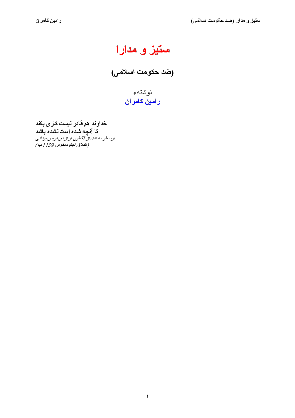 ستیز و مدارا فوریه 13, 2008کتابکتاب-مردمسالاری، کتاب-سیاستArash_Bikhoda ضد حکومت اسلامی رامین کامران دریافت